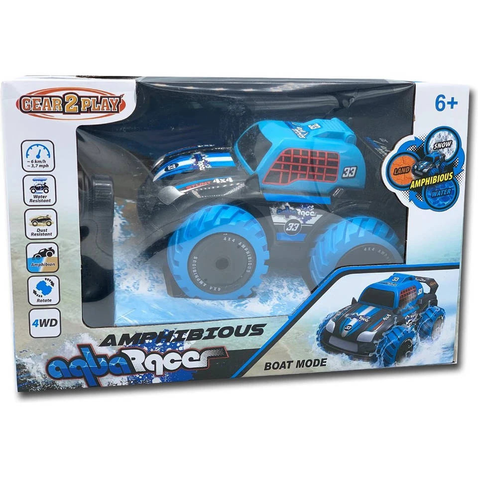 - De Gear2Play AquaRacer is een op afstande bestuurbare terreinwagen en boot ineen.