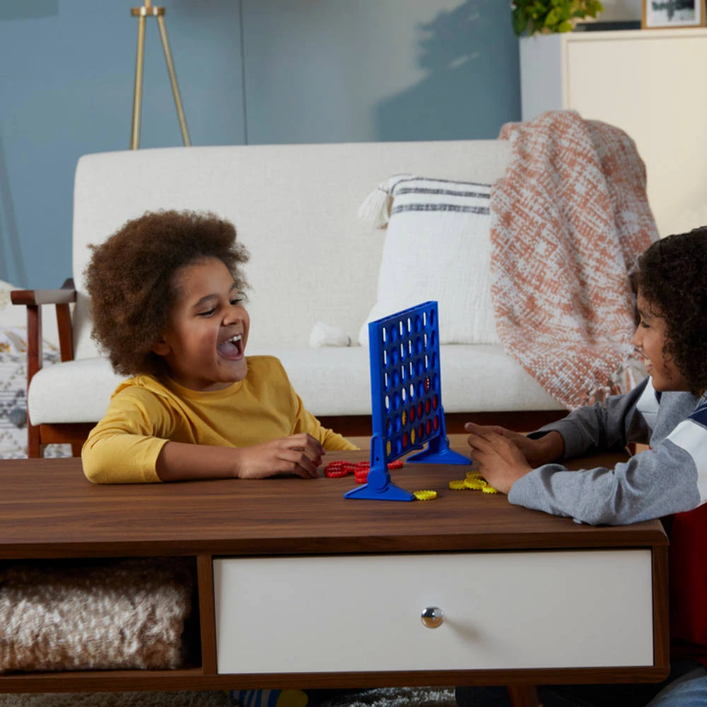 Krijg als eerste vier van dezelfde kleur fiches op een rij en win het leuke spel 4 op ’n rij! Laat je rode of gele schijfjes in het speelraam vallen en zorg dat jij als eerste 4 op ’n rij hebt. Als je tegenstander te dicht bij 4 op ’n rij komt, blokkeer je hem of haar met een schijfje van jou! De speler die wint, trekt het schuifbalkje opzij om alle schijfjes eruit te laten vallen en het spel kan weer opnieuw beginnen!