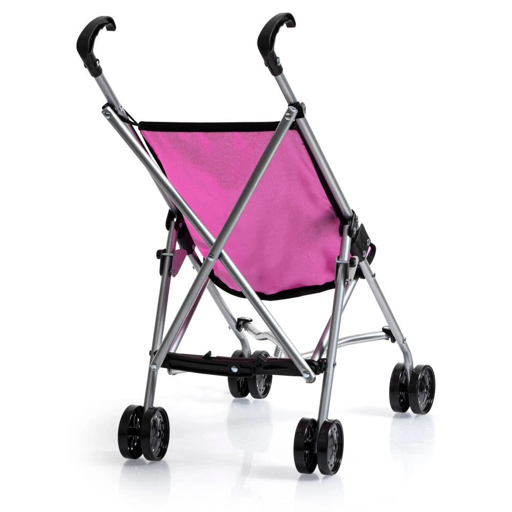 Deze roze poppenbuggy is perfect voor alle kleine poppenmoeders en -vaders. Een mooi vormgegeven en stevige poppenbuggy waarin je je pop lekker kan meenemen als je op stap gaat. Dankzij de geïntegreerde riem is de veiligheid van de pop of knuffel gegarandeerd. De buggy kan gemakkelijk worden geduwd dankzij de dubbele wielen; ook is deze gemakkelijk op te vouwen om te vervoeren. De buggy is geschikt voor poppen tot 46 cm.