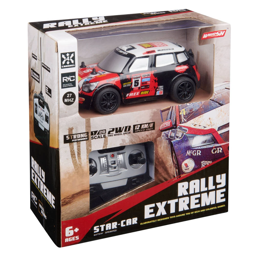 Tijd om lekker te racen met deze gave Rally Extreme op afstand bestuurbare auto. De auto is gemaakt op een schaal van 1:28 en is 14 cm groot. Organiseer spannende races met je vrienden en laat ze stof happen!