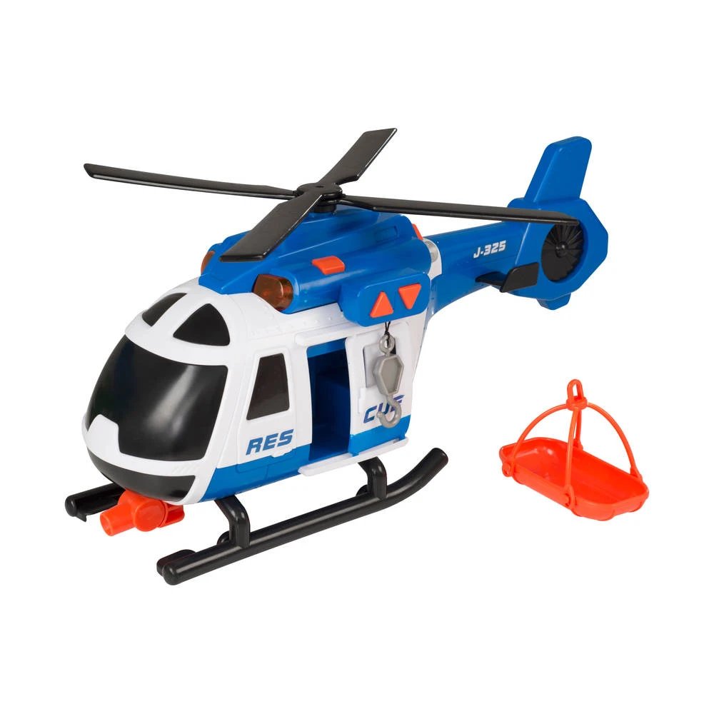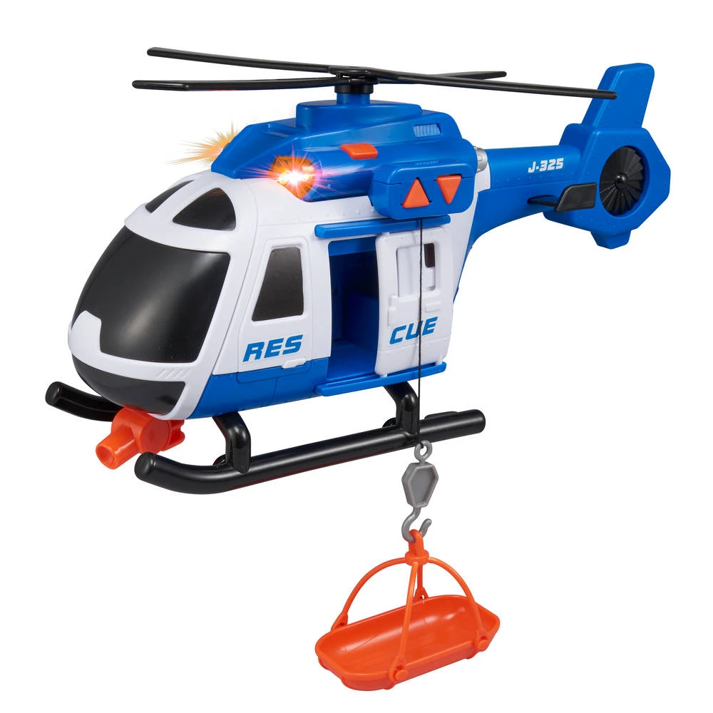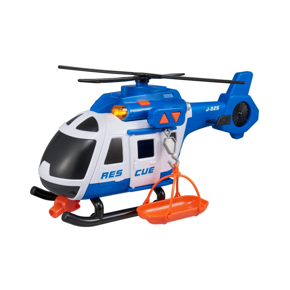 Ga op een uitdagende missie om zoveel mogelijk mensen naar veiligheid te brengen! Deze Teamsterz reddingshelikopter met licht en geluid is uitgerust met een winch en een stretcher om je te helpen de klus te klaren. De speelgoedheli is uitgerust met vrij draaiende propellers, een schuifdeur, licht en helikoptergeluidseffecten om je speelervaring nóg leuker te maken!