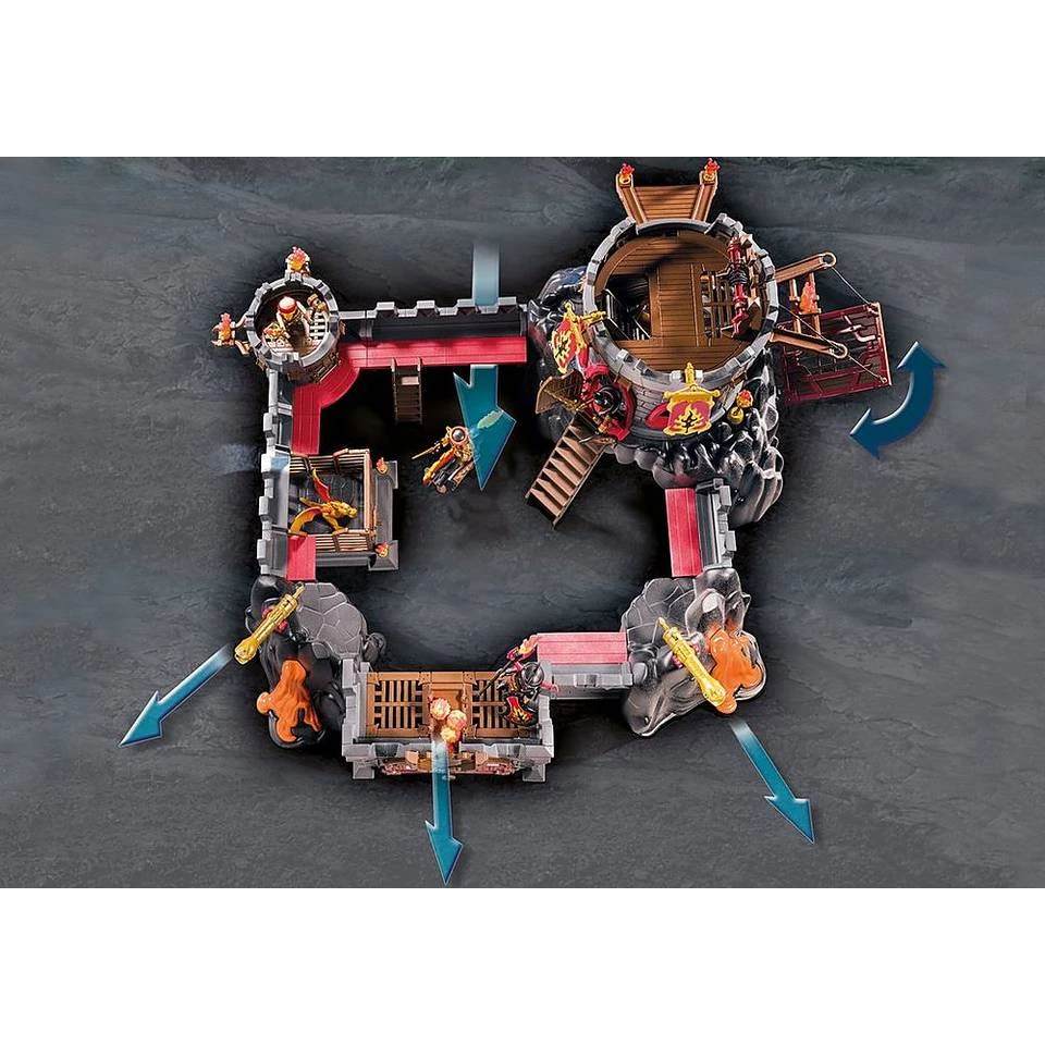Dit indrukwekkende fort in deze Playmobil Novelmore set is de thuisbasis van de opstandige Burnham Raiders. Het kasteel torent trots uit boven de vulkanische vuurberg. PLAYMOBIL-nr. 70221