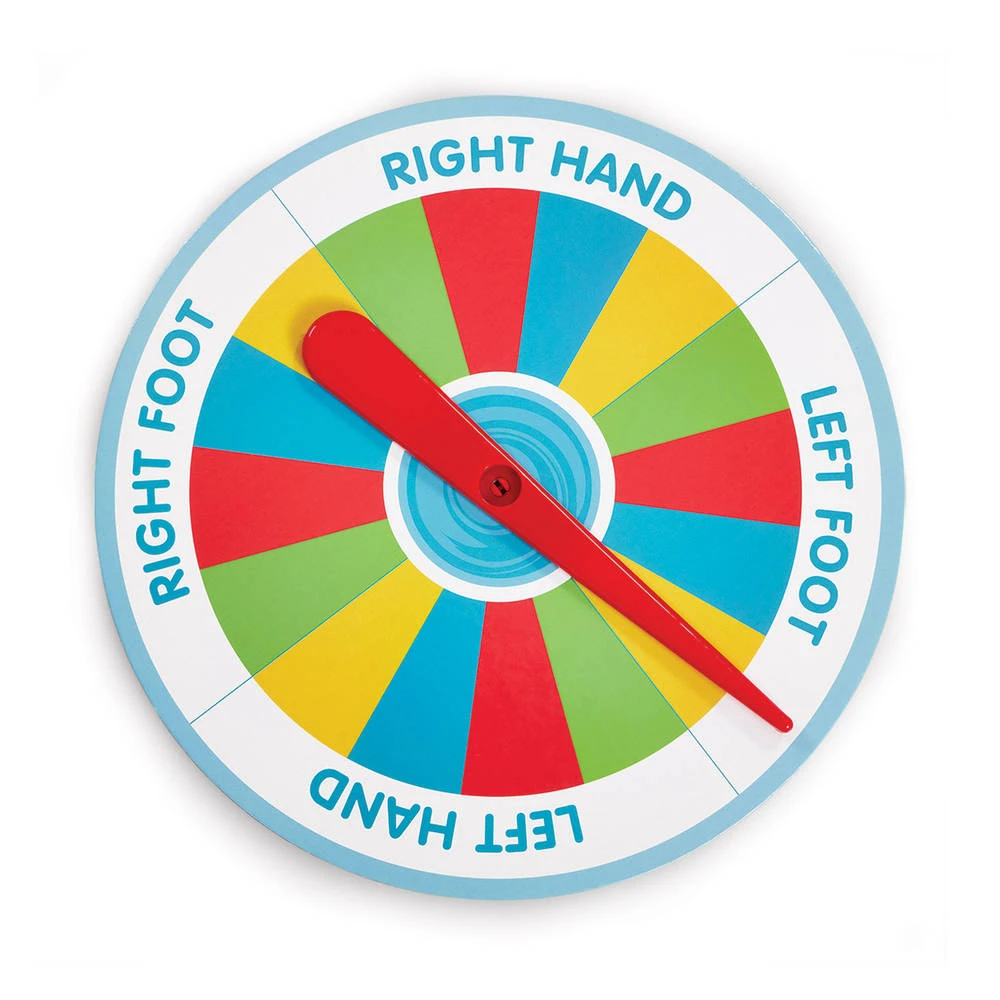 Dit Twist and Tumble spel is een echte test van balans en behendigheid. Veel plezier met familie en vrienden terwijl je om de beurt de instructies van de spinners opvolgt totdat iemand tuimelt en weg is. Maar pas op, want hoe langer het spel duurt, des te sneller je in de knoop raakt. Blijf de spinner draaien totdat de meest behendige persoon wint.