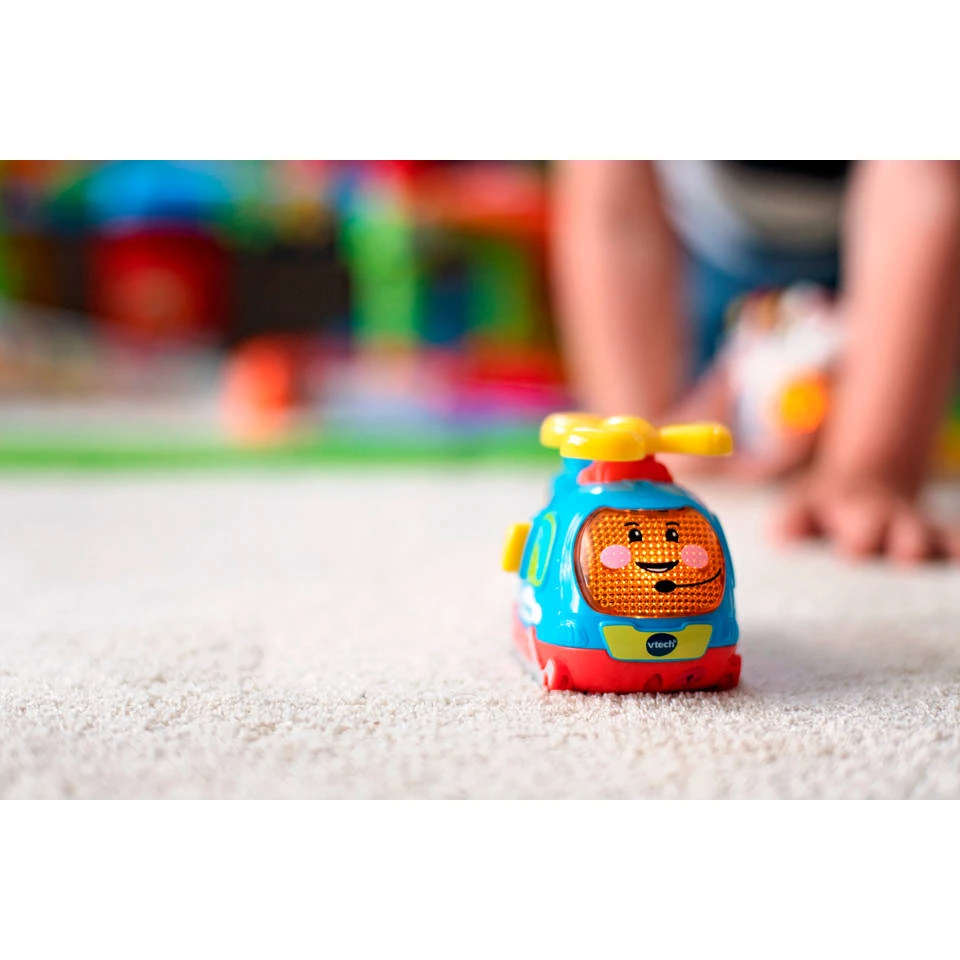 Kom, stap maar in en maak een mooie vlucht met Harvey helikopter! Druk op de knipperende gezichttoets om geluidseffecten, vrolijke zinnetjes en gezongen liedjes te horen. Je kunt zelf ook op de actie-toets drukken om de propeller rond te laten draaien en grappige geluidjes te horen.